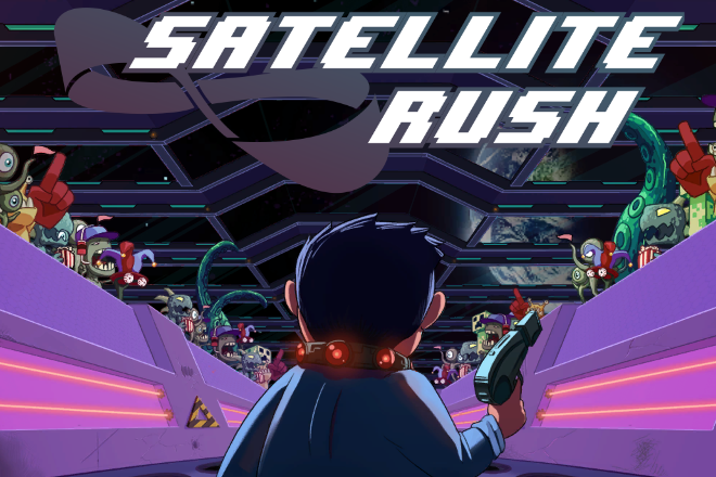 Satellite Rush is a pixelart top-down dual stick shooter with randomized levels and roguelike elements. Take control of an office worker and blast through the endless corridors of Satellite Moebius, an arena filled with vicious aliens, robots programmed to clean (or kill) and a (not always so) cheery audience.